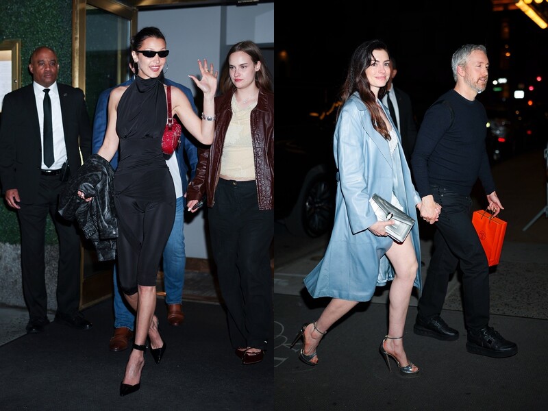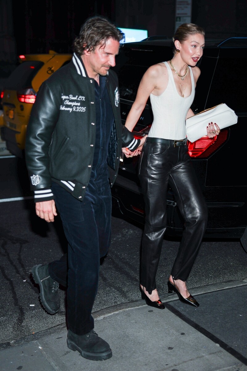 Gigi Hadid与Bradley Cooper自2023年开始交往,在Gigi 30岁生日派对上,两人手牵手一起来到现场,身为当天的寿星,Gigi没有选择华丽的衣裳,反倒是以简练的Schiaparelli马甲剪裁连体衣,搭配黑色直筒皮裤,低调却依然时髦亮眼,手中Jimmy Choo手拿包则与身上金饰呼应,最后再以Giuseppe Zanotti的经典高跟鞋收尾。一旁Bradley Cooper选择休闲轻便的棒球外套和深色装束,将焦点全留给女友,不过皮革材质拼接的夹克,也被发现悄悄与Gigi的皮裤搭到了!