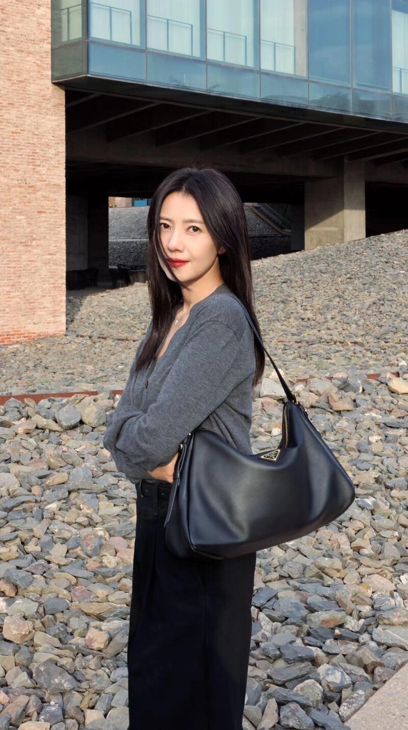 Prada Aimée手袋率先推出的是大号的尺寸,马上也将带来中号的尺寸,身材较为娇小的女孩们,若是不习惯背大尺寸的包包,便更推荐即将推出的中号Aimée,实用性能与时髦度照样不减!
